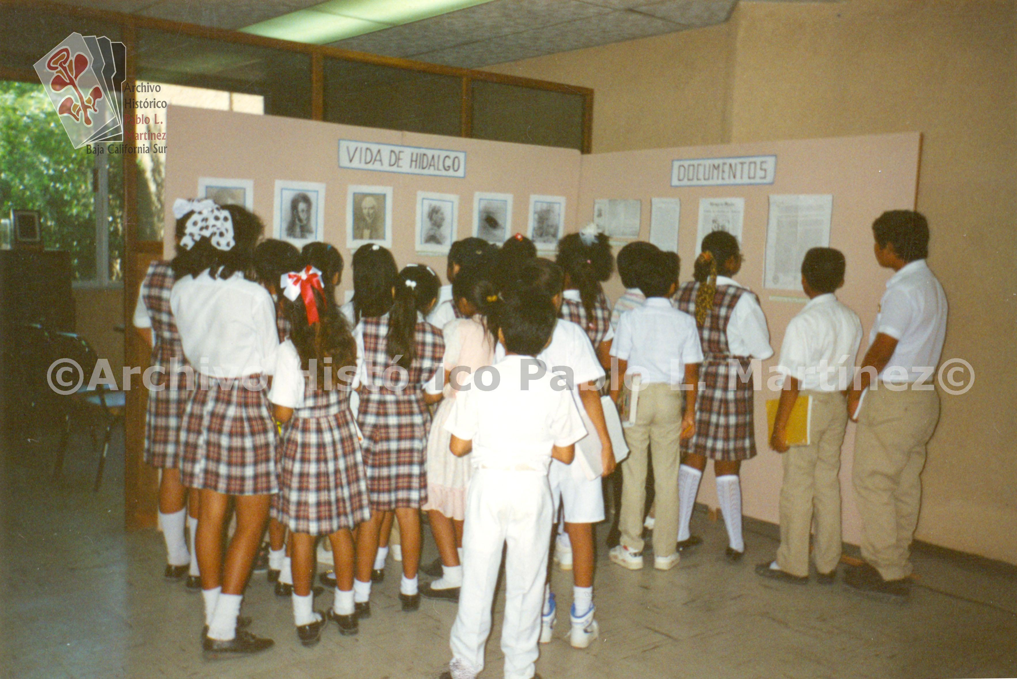Título: Alumnos de primaria visitando la exposición de Hidalgo, en el Archivo Histórico Pablo L. Martínez.