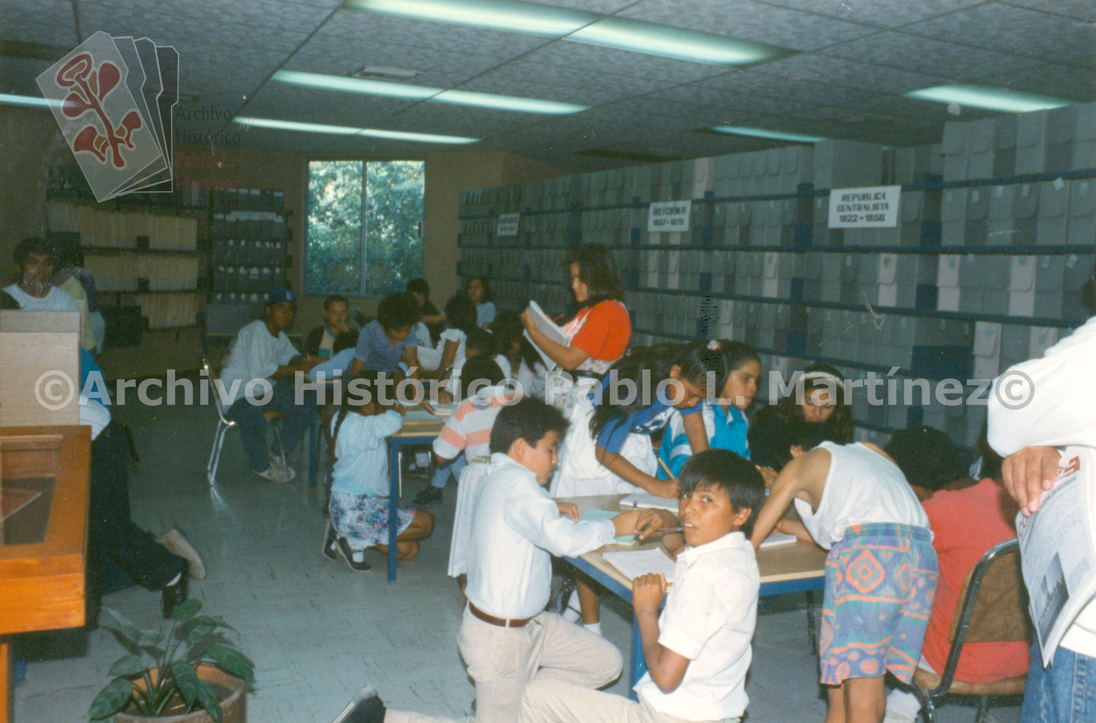 Título: Alumnos de primaria visitando la exposición de Hidalgo, en el Archivo Histórico Pablo L. Martínez.