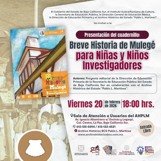 El Gobierno del Estado de Baja California Sur, el Instituto Sudcaliforniano de Cultura, y el Archivo Histórico del Estado “Pablo L. Martínez”, en coordinación con el Ayuntamiento de La Paz, La dirección de Cultura Municipal de LA Paz y el Teatro Juárez les invitan a visitar la Exposición:
